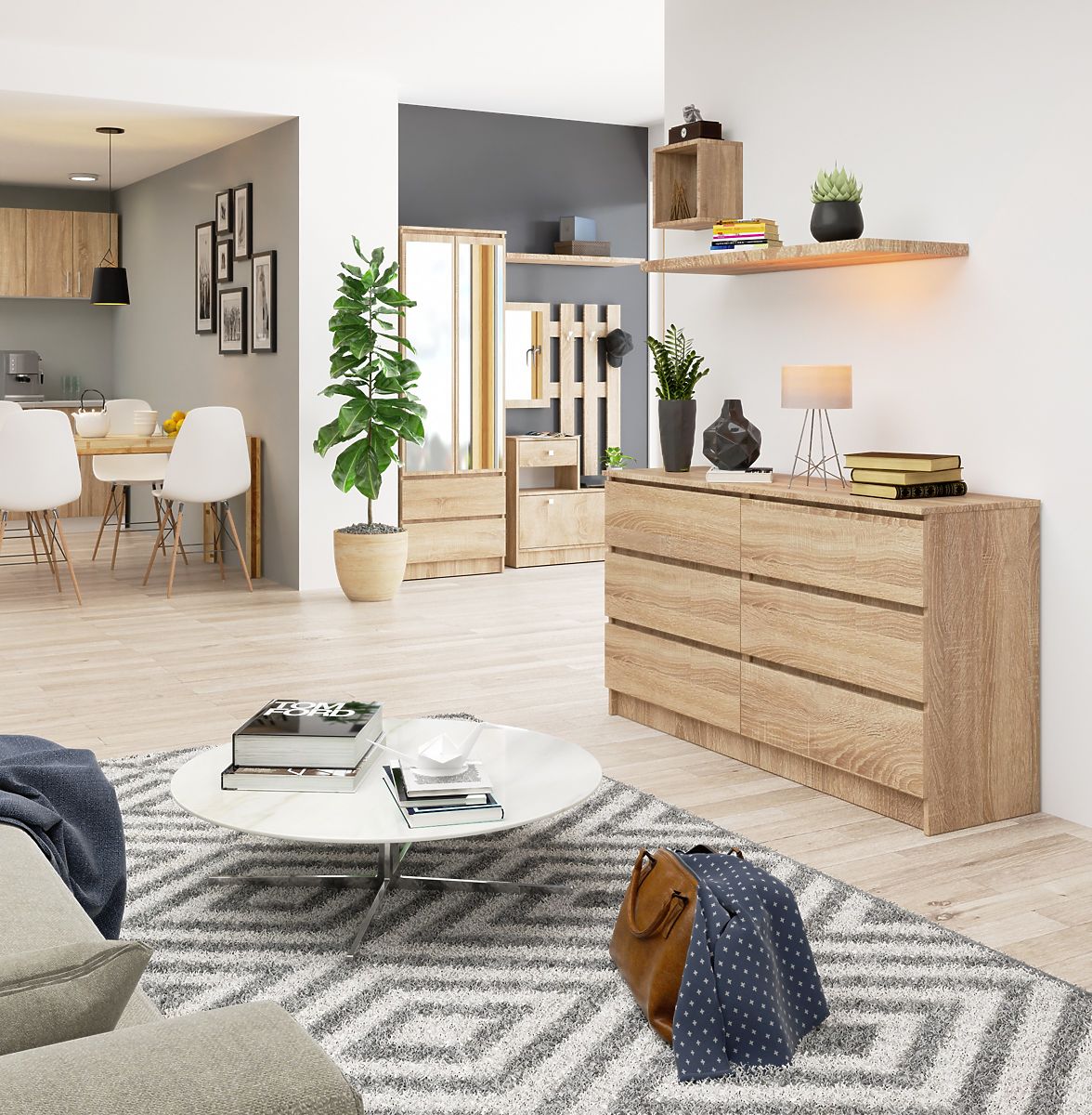 Šest praktičnih ladica, duga ploča i boja koja je najpopularnija među ljudima koji preferiraju lako čistiv, univerzalan i bezvremenski namještaj - to su karakteristike koje opisuju komodu K140 u boji hrast sonoma. Ova ponuda zaslužuje pažnju prvenstveno zbog svog dizajna i iznimne funkcionalnosti, ali vrijedi obratiti pažnju i na visoku kvalitetu i pažljivu izradu namještaja, koji se može uspješno koristiti kako u uredskim prostorima, tako i u dnevnom boravku, blagovaonici, spavaćoj sobi ili mnogim drugim stambenim interijerima. Solidna izrada od izdržljivih materijala sigurno će cijeniti i najzahtjevniji kupci, kojima će prednost namještaja biti i njegova povoljna cijena.