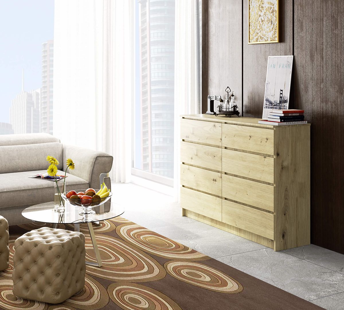 Komoda s 8 ladica od laminirane ploče Hrast Artisan. .. više