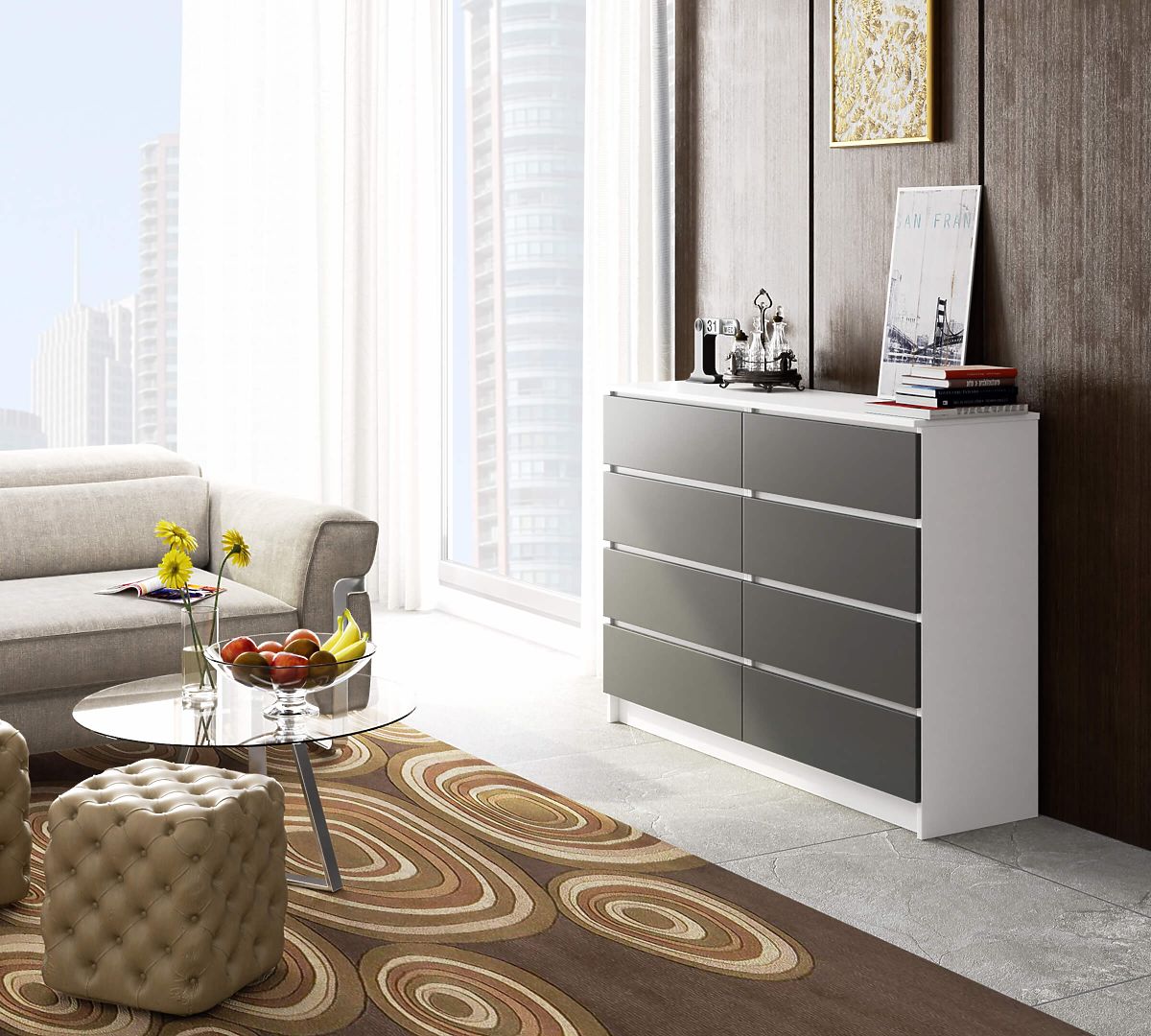 Komoda s 8 ladica u bijeloj i sivoj boji. .. više