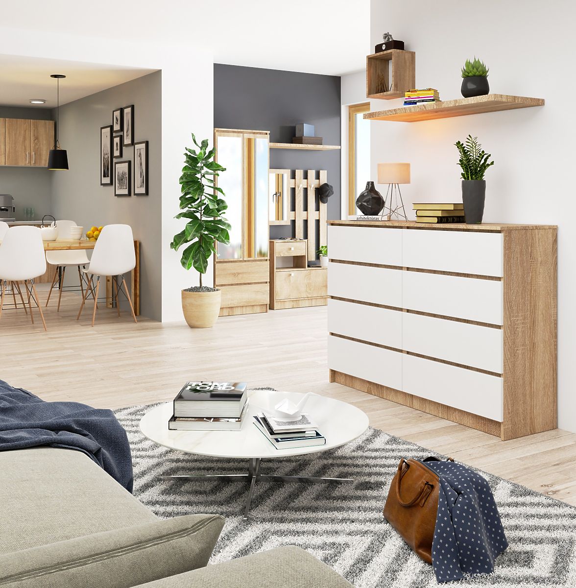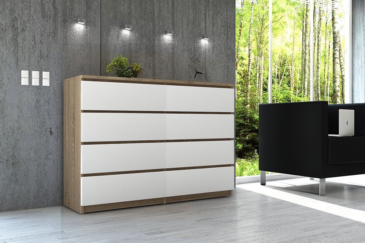 Komoda s 8 prostranih ladica u kombinaciji sonoma i bijele boje. .. više