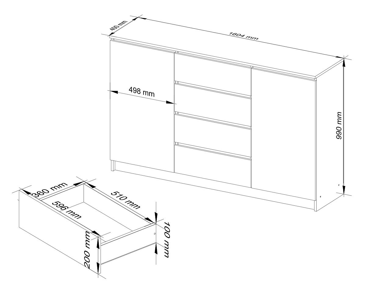 - Komoda izrađena od visokokvalitetne laminirane ploče debljine 16 mm otporne na habanje, proizvođač kronospan