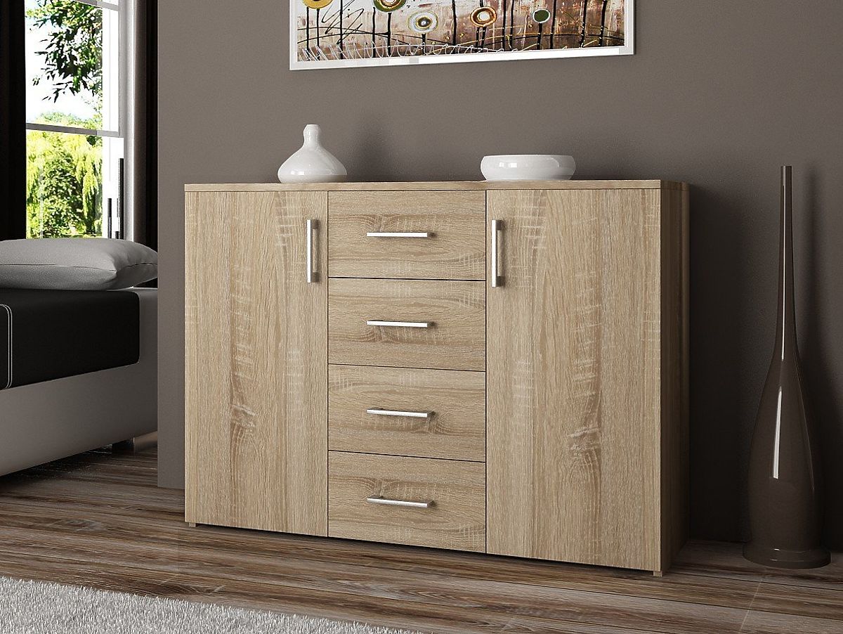 Komoda s četiri ladice i dvije velike ormariće u boji Hrast Sonoma. .. više