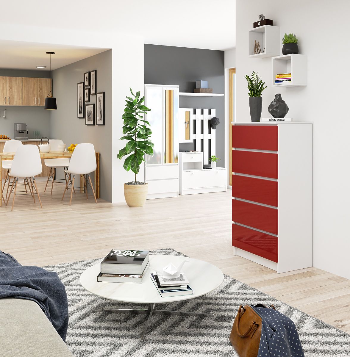 Volite li originalne dizajne i nekonvencionalno uređene interijere? Tražite neobičan namještaj koji će osvojiti vaše srce i omogućiti vam stvaranje sobe iz snova? Predstavljena komoda K60 opremljena s pet prostranih ladica zasigurno će ispuniti vaša očekivanja. To je namještaj koji kombinira atraktivan dizajn, funkcionalnost i izvrsnu kvalitetu.