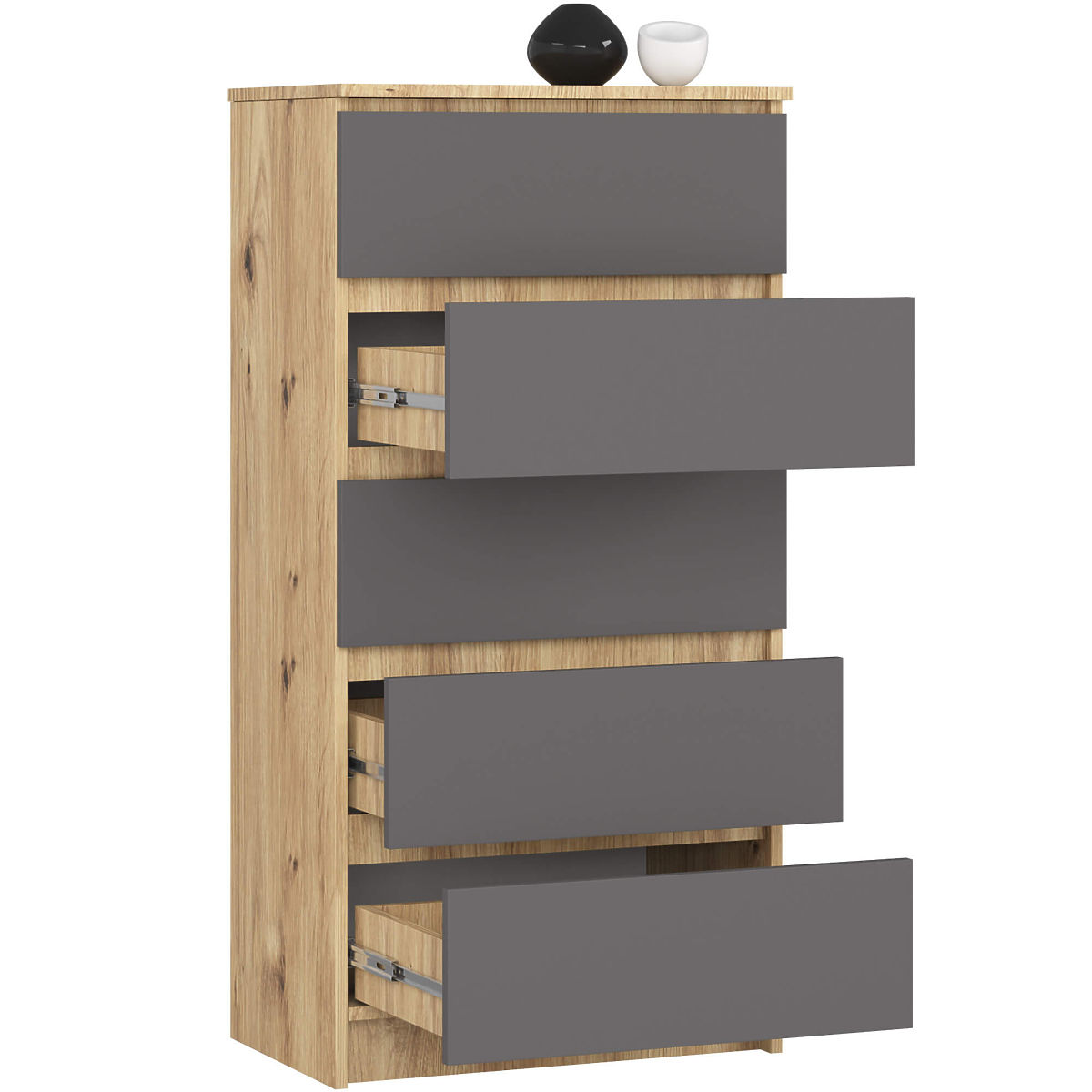 Komoda s 5 ladica u hrastu Artisan i grafit sivoj boji. .. više