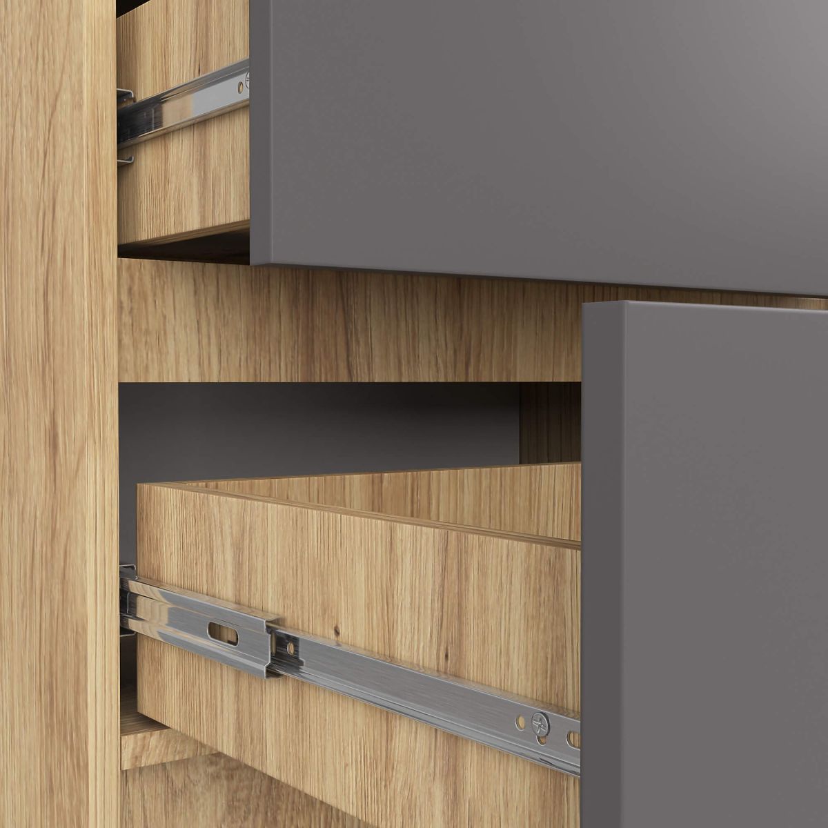 - Ladice se kreću na metalnim kugličnim vodilicama - Rubovi obloženi ABS rubom koji osigurava visoku zaštitu od oštećenja