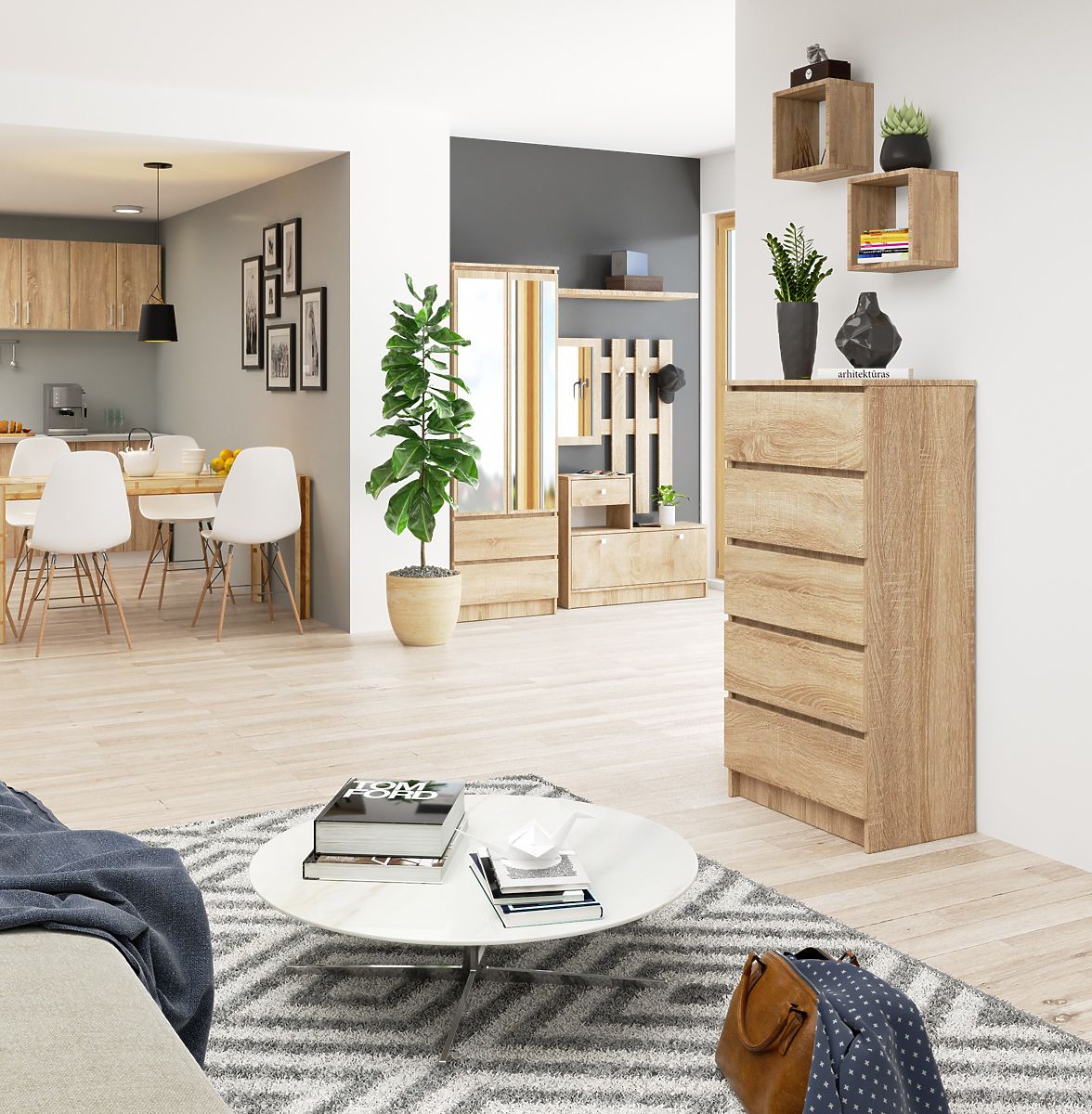 Komoda s pet prostranih ladica u modernoj boji hrast sonoma. .. više
