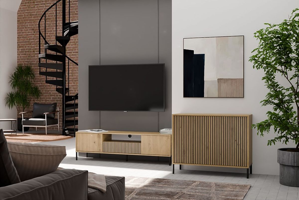 GLAVNE KARAKTERISTIKE NAMJEŠTAJA:Komoda KAMARO 2D SLIM DUB ARTISAN savršeno se uklapa s drugim namještajem iz kolekcije KAMARO, kao što su TV ormarići, vitrine ili druge komode. Stvorite harmonične setove, prilagođene vašim potrebama i životnom stilu!