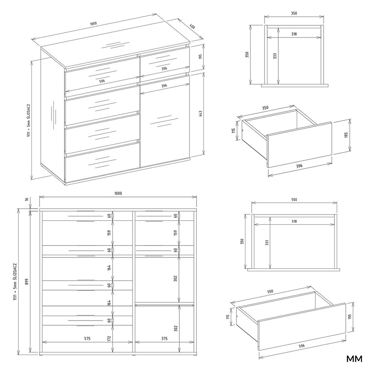 Promišljeni raspored jednih vrata i pet prostranih ladica omogućuje udobno spremanje odjeće, dokumenata, dodataka ili drugih svakodnevnih predmeta, što pomaže u održavanju reda u prostoriji.