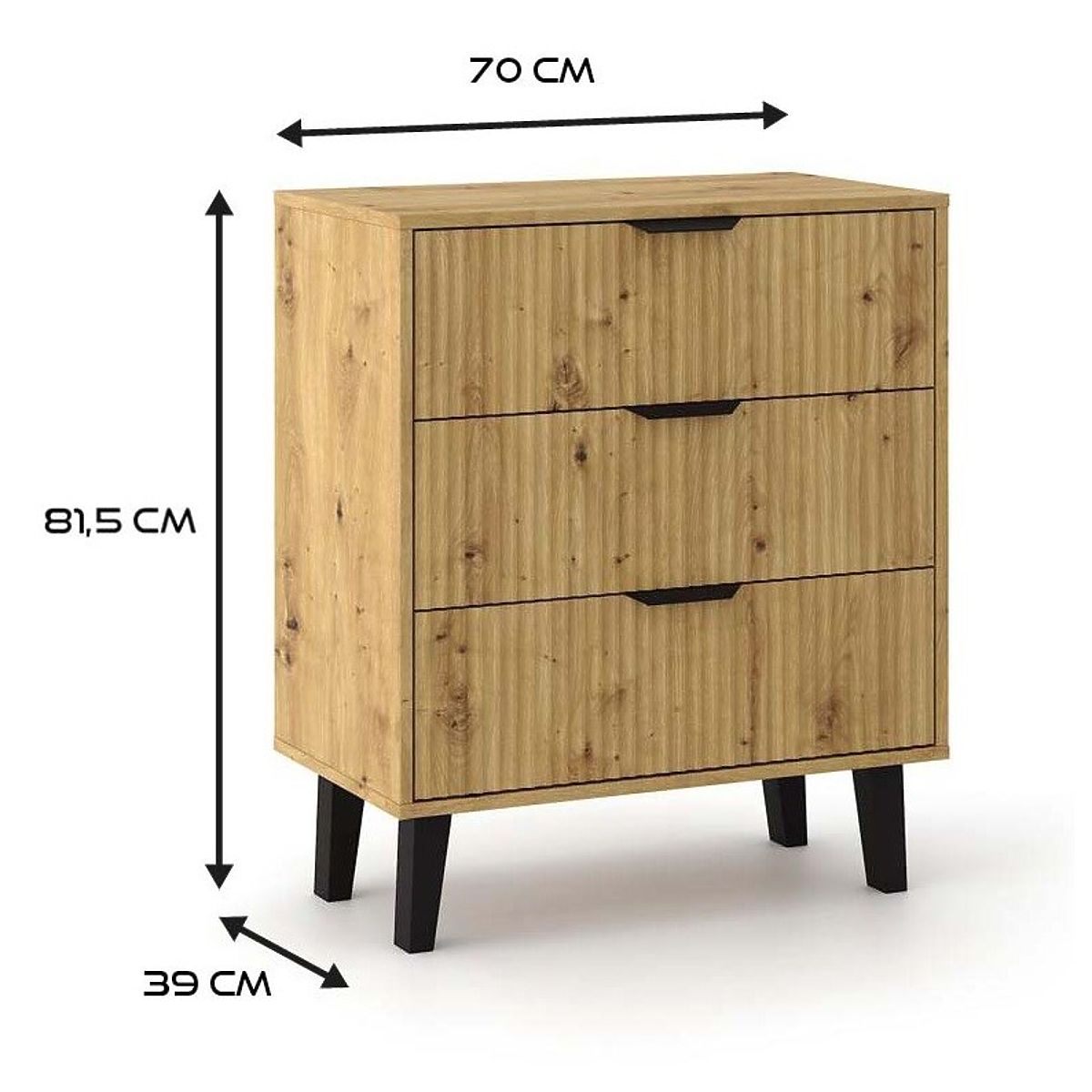 Komoda s 3 ladice u boji hrasta Artisan s modernim rebrastim dizajnom. .. više