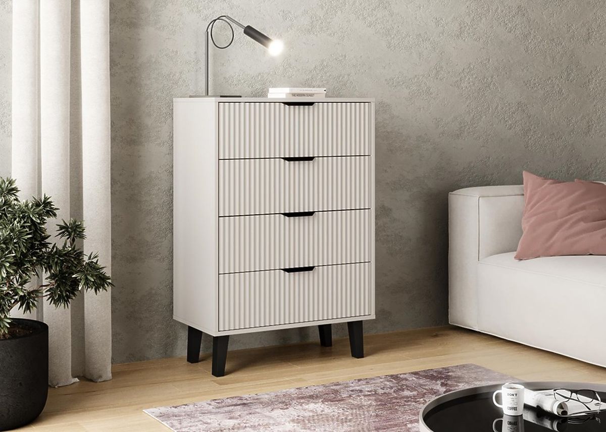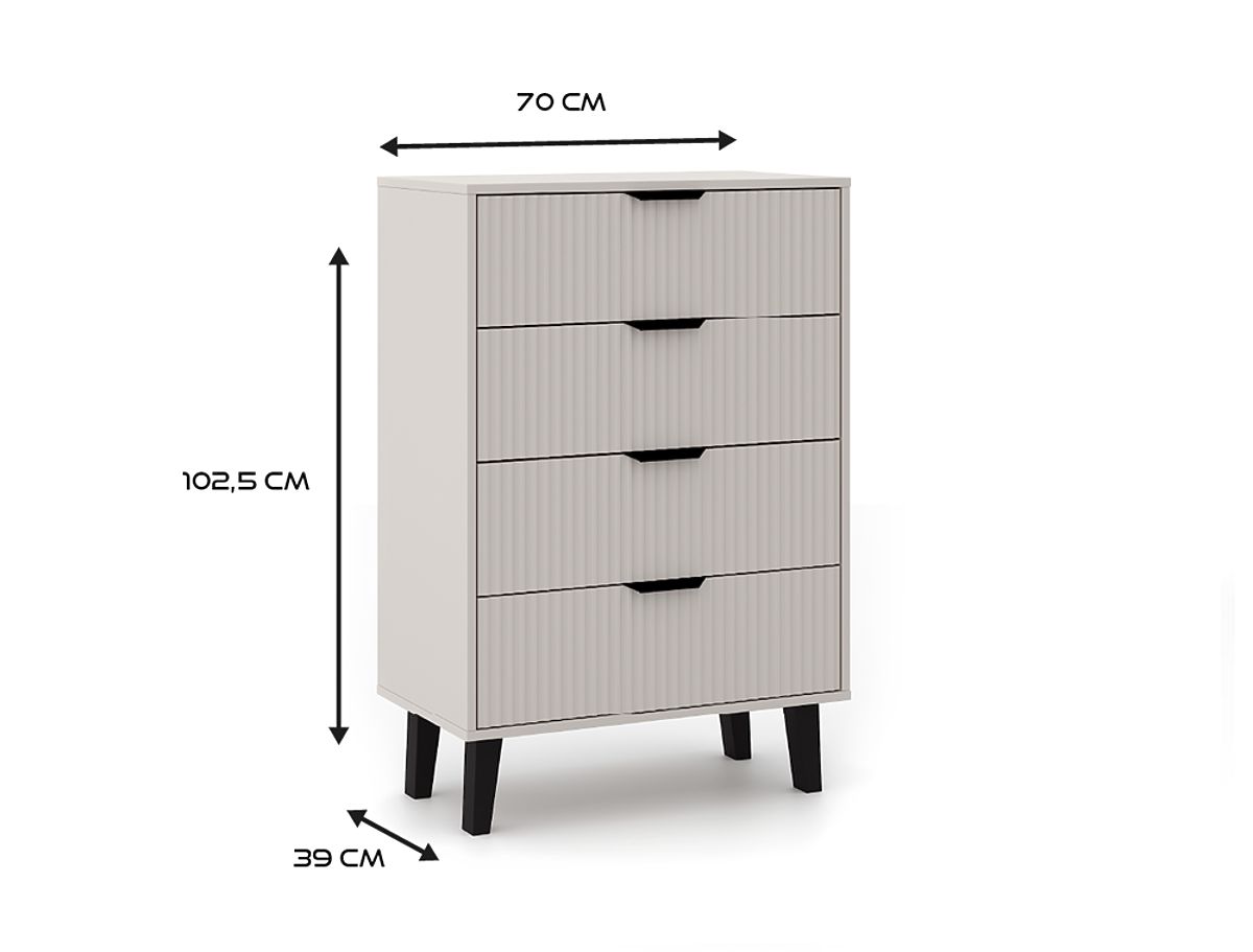 Komoda s 4 ladice u modernoj boji kašmir i rebrastim prednjicama. .. više