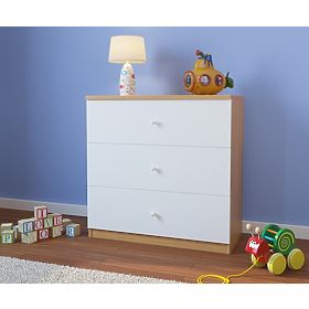 Komoda do dětského pokoje prostě patří! Pořiďte si krásnou komodu Ourbaby a získáte úložný prostor. Komoda je variabilní, pro holky i pro kluky. Komoda se vyrábí z kvalitní lamino desky a spolu s postelemi Ourbaby vytvoří jedinečný design. Najdete jí v krásném bukovo-bílém provedení. Vnější rozměry: 80 x 80 x 40 centimetrů