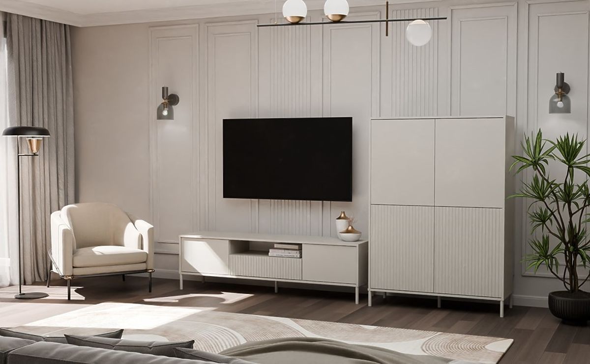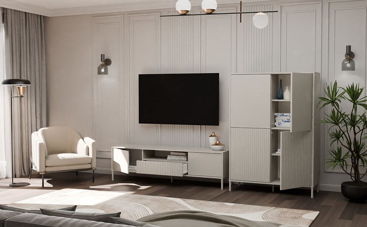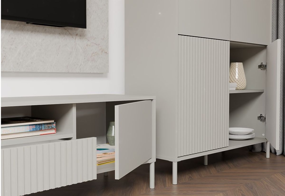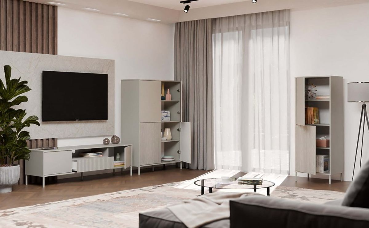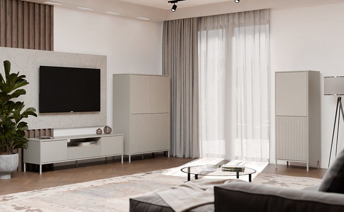 Površinska obrada namještaja u modernoj boji Kašmira (elegantna nijansa bež) dodaje interijeru eleganciju i suvremeni karakter, zadržavajući neutralnost koja se lako uklapa u različite dekorativne stilove