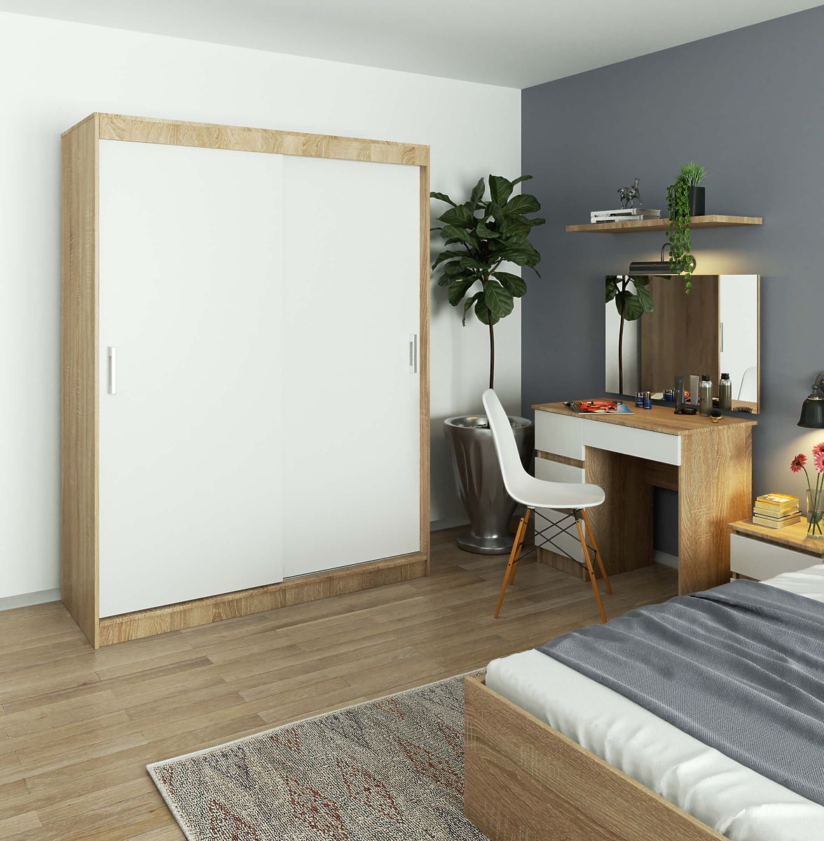 Banaby.hr » Dječji namještaj / Komode i ormarići / Ormari / KLIZNI ORMAR 150 cm CLP MONO SONOMA/BIJELA