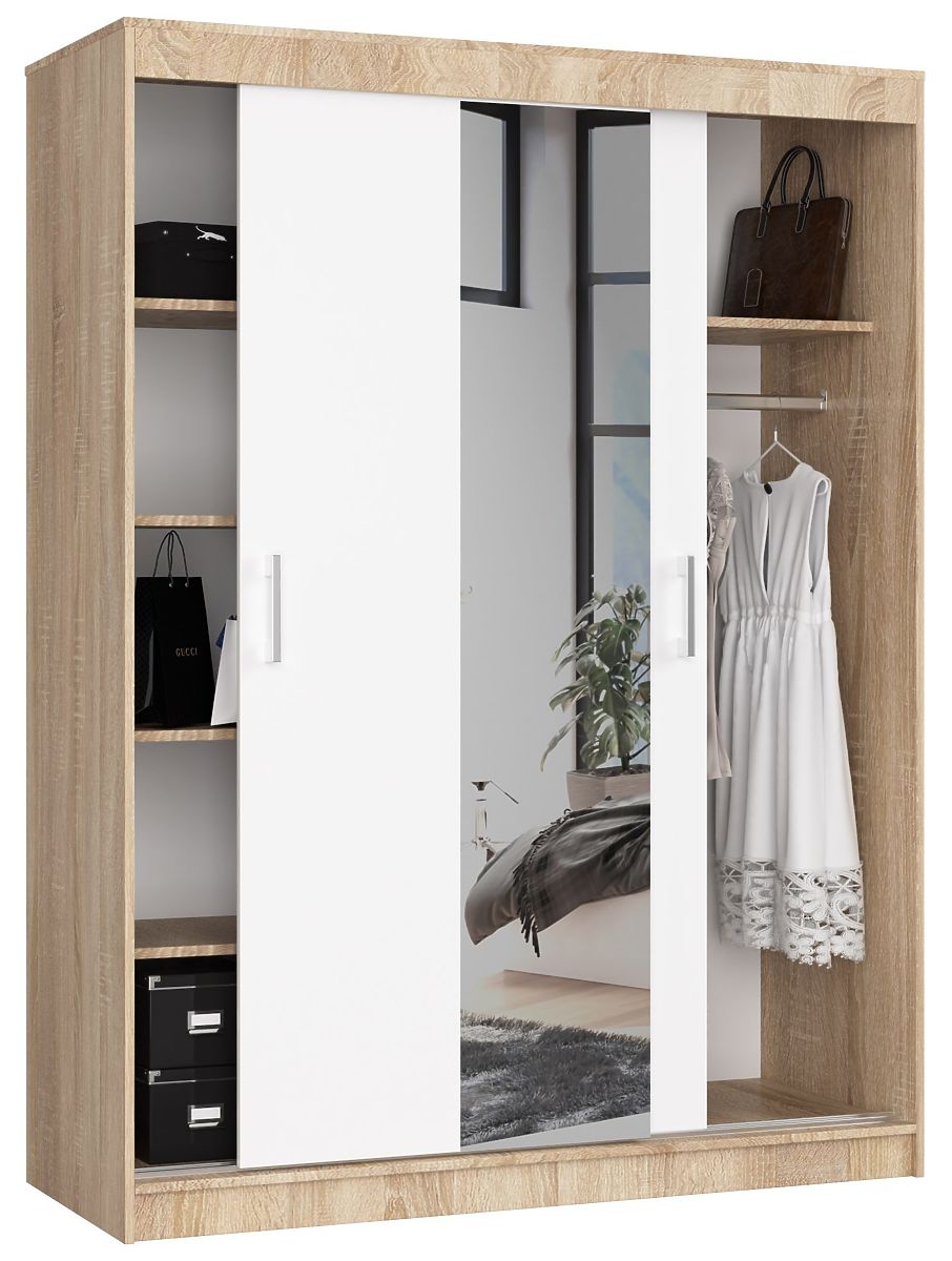 Ormari su vrlo funkcionalan namještaj bez kojeg je teško zamisliti svakodnevni život. Nije čudno da mnogi ljudi pažljivo razmatraju koji model namještaja kupiti. Zanimljiva ponuda je klizni ormar 150 cm CLP s ogledalom u dvije boje: sonoma i bijela. Izgleda vrlo elegantno, savršeno se uklapa u moderne interijere. Istovremeno je funkcionalan. Može se smjestiti u spavaću sobu, garderobu i dnevni boravak.