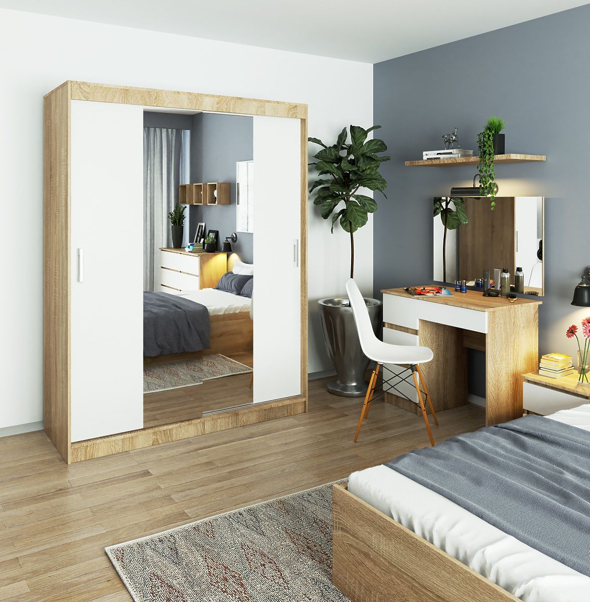 Ormar ne mora biti dosadan namještaj. Kombinacija dviju boja i ogledala unosi više života u prostoriju. Istovremeno je funkcionalan i olakšava održavanje reda u odjeći. Impresionira i svojom izdržljivošću, služeći dugi niz godina.