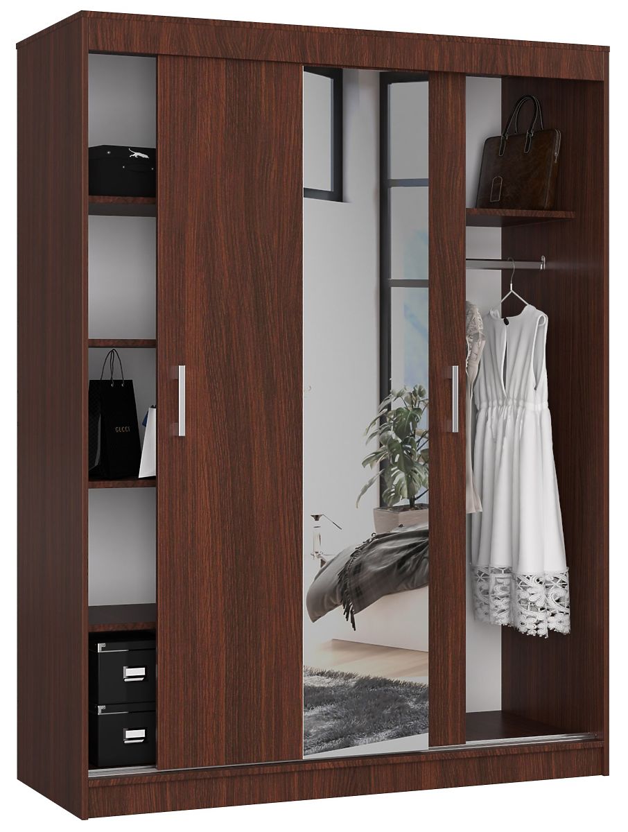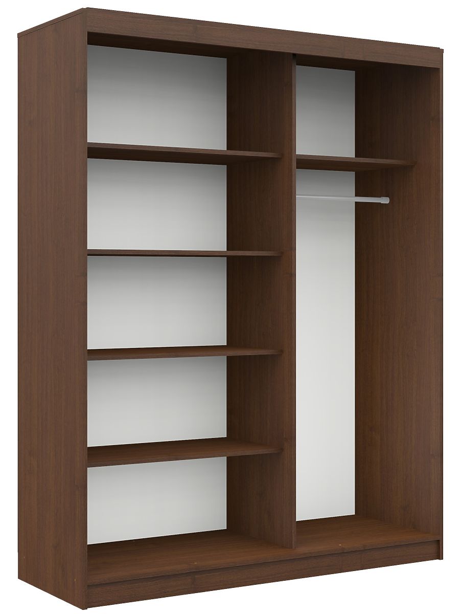 Klizni ormar u boji wenge duljine 150 cm s policama i šipkom za odjeću. Velika površina za korištenje.