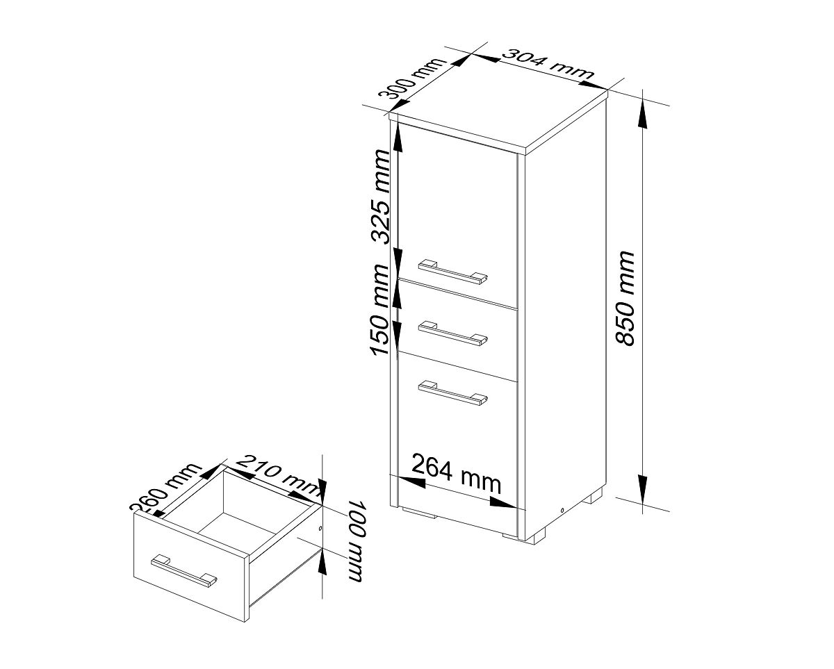 Ormarić - stupac regala kupaonski FIN 2D 1SZ je moderan i istovremeno elegantan namještaj koji pomaže održati red u kupaonici. Sastoji se od ladice i dva ormarića u koje se mogu sakriti ručnici, kozmetika i druge higijenske potrepštine. Namještaj se odlikuje trajnošću i solidnom izradom. Iako je jednostavan u obliku, ističe se bojama - kombinacijom bijele i grafitno sive. Ručke vrata su srebrne.