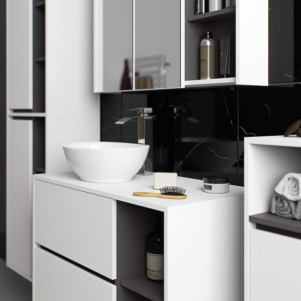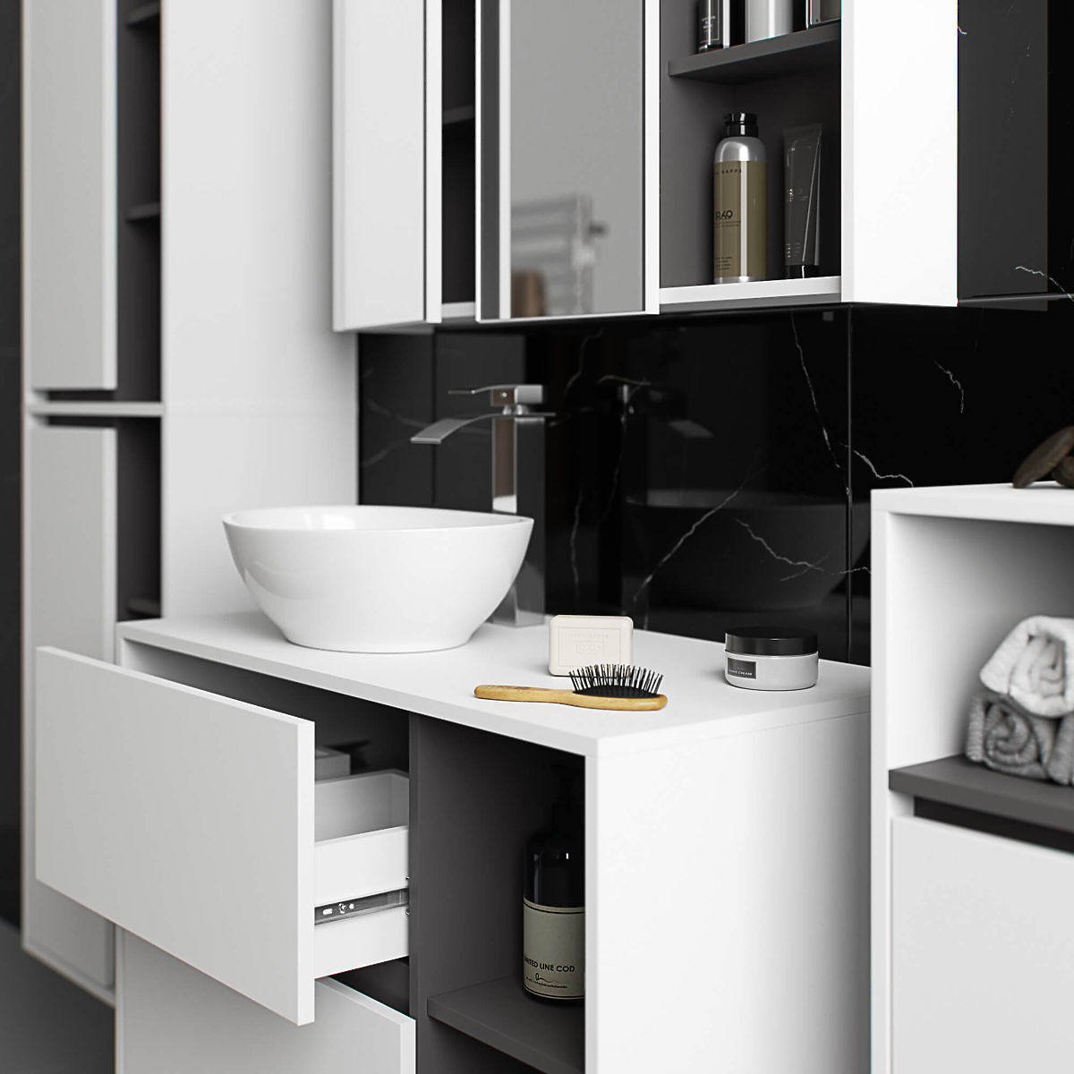 Banaby.hr » Dječji namještaj / Komode i ormarići / Ormari / KUPAONSKI ORMARIĆ ISPOD UMIVAONIKA S OTVORIMA VAMI W90 UM 2SZ 2P BIJELA / GRAFITNO SIVA