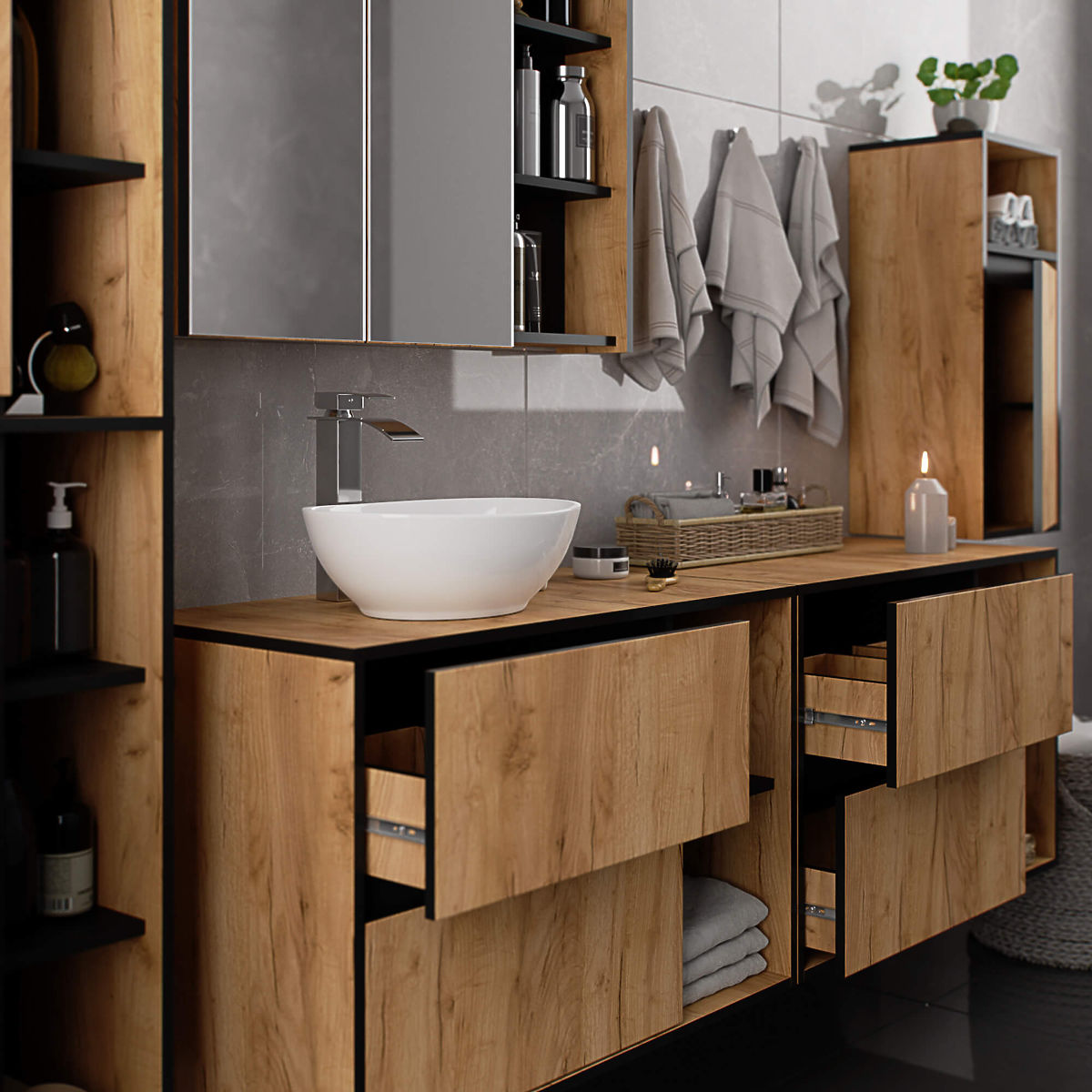Banaby.hr » Dječji namještaj / Komode i ormarići / Ormari / KUPAONSKI ORMARIĆ ISPOD UMIVAONIKA S OTVORIMA VAMI W90 UM 2SZ 2P HRAST CRAFT / CRNA