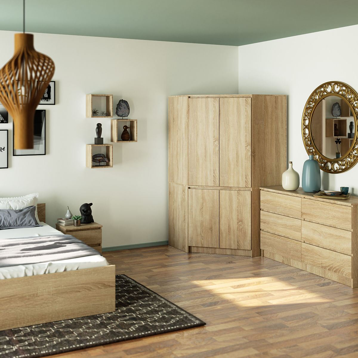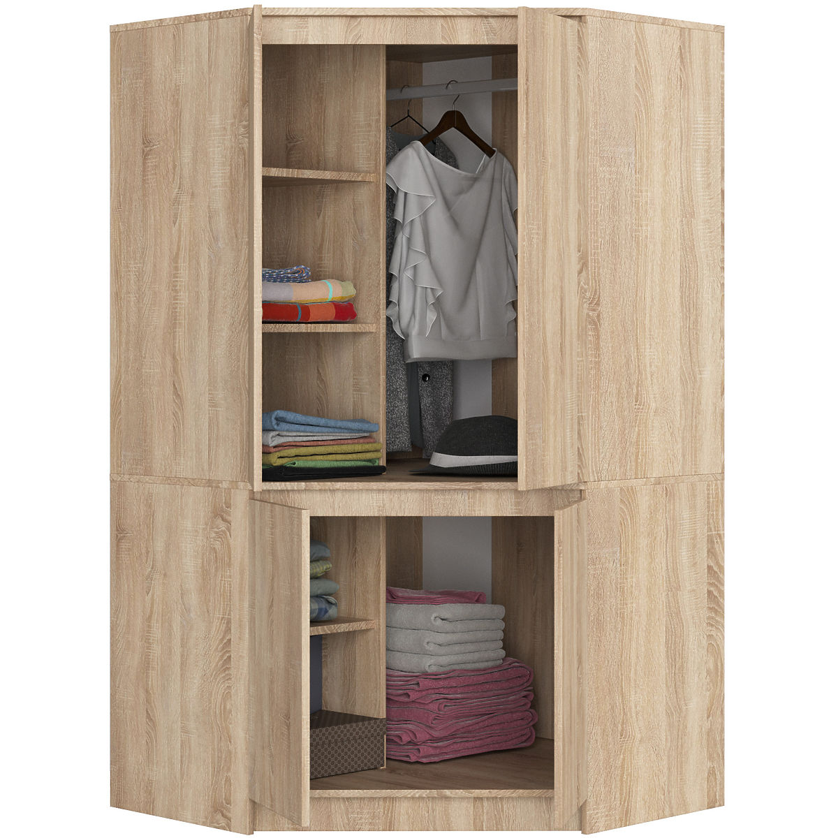 Četverovratni ormar izrađen je od izdržljive laminirane ploče. Korpus namještaja je u boji hrast sonoma. Opremljen je šipkom i 6 polica, što pruža mnogo prostora za pohranu.