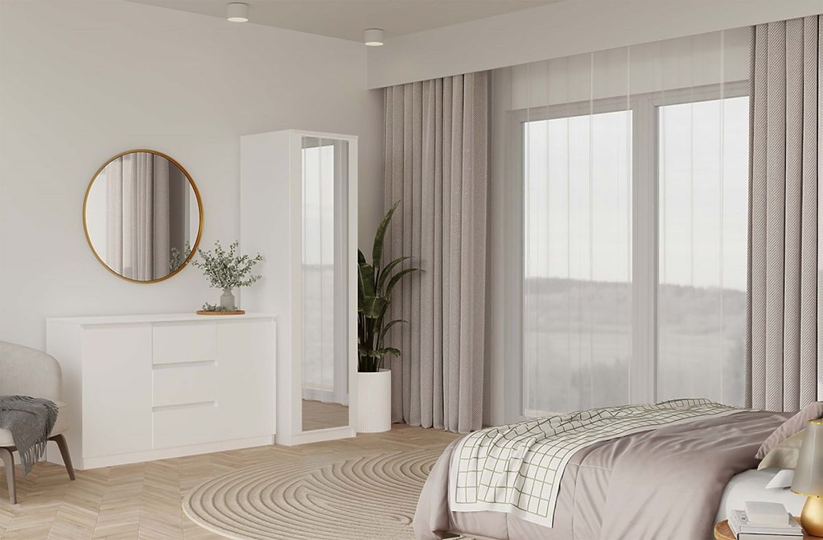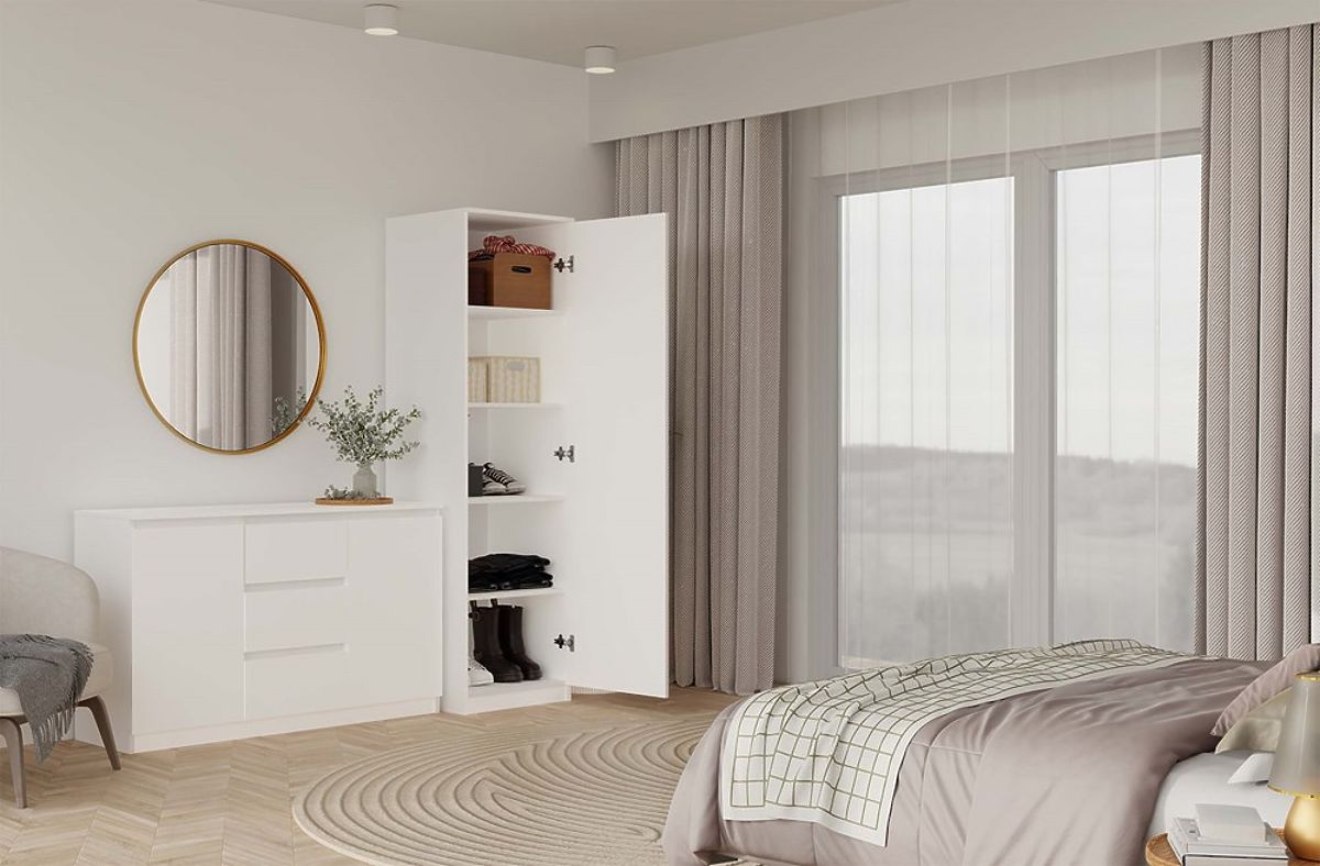 Ormar SD-50 S OGLEDALOM je moderan i funkcionalan namještaj dizajniran za udobno pohranjivanje u manjim prostorima – spavaćoj sobi, predsoblju, garderobi ili uredu. Zahvaljujući prednjoj strani s velikim ogledalom, optički povećava prostor i dodaje mu lakoću, dok ispunjava praktičnu funkciju svakodnevne upotrebe.