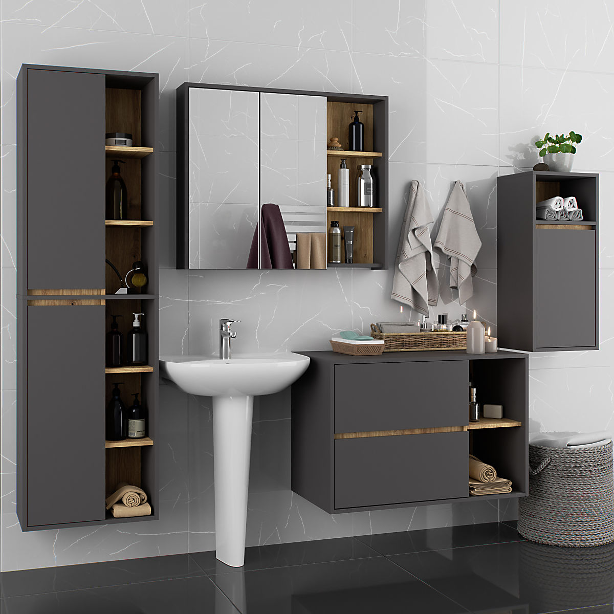 Banaby.hr » Dječji namještaj / Komode i ormarići / Ormari / VISOKI KUPAONSKI ORMARIĆ VAMI W35 1D 1W GRAFIT SIVA / HRAST ARTISAN