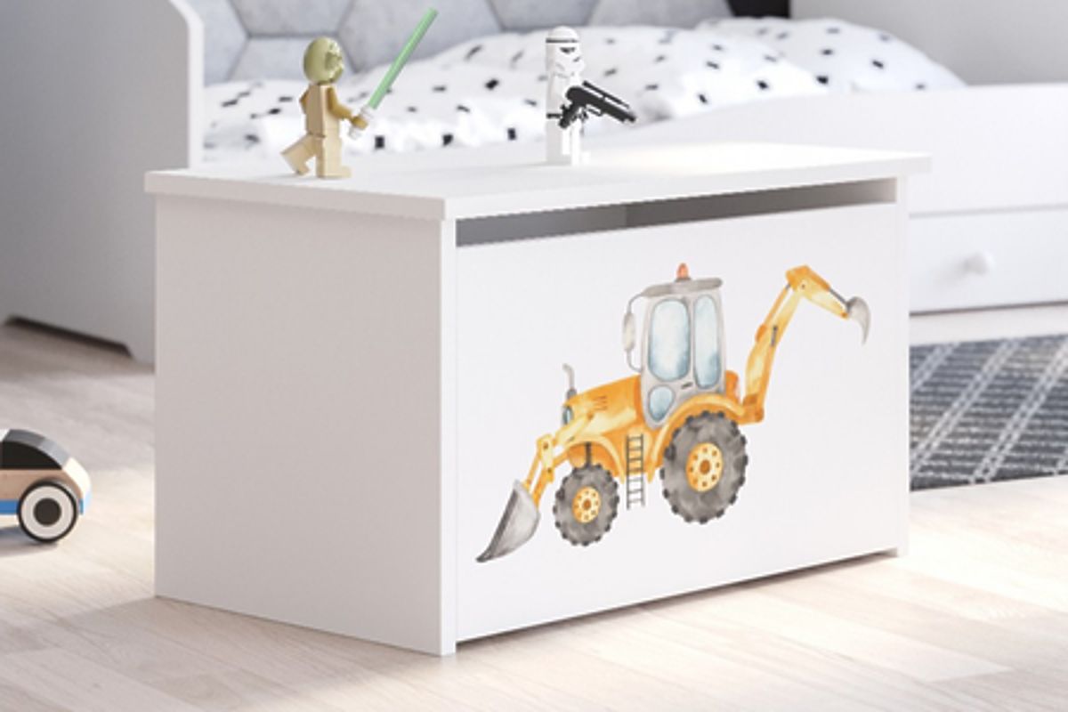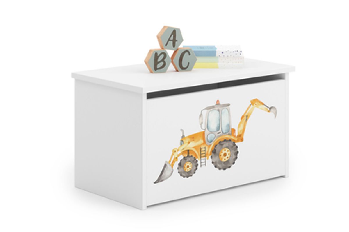 Banaby.hr » Dječji namještaj / Komode i ormarići / Škrinje za igračke / Kutija za igračke Daria bijela s otiskom Žuti bager