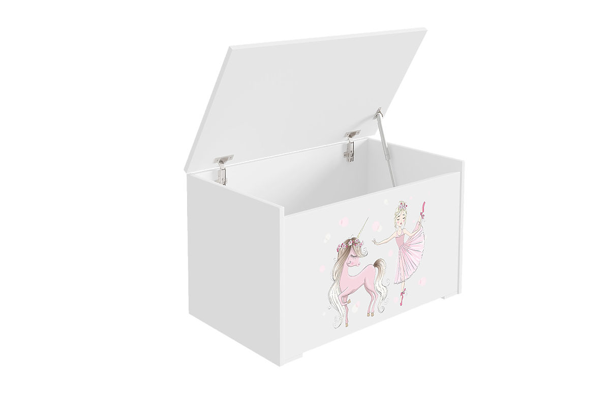 Banaby.hr » Dječji namještaj / Komode i ormarići / Škrinje za igračke / Kutija za igračke Daria bijela s tiskom Djevojčica s jednorogom