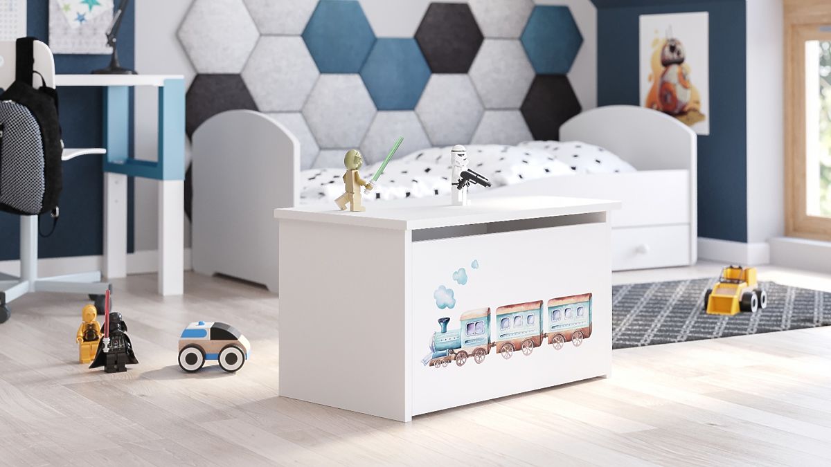 Banaby.hr » Dječji namještaj / Komode i ormarići / Škrinje za igračke / Kutija za igračke Daria bijela s tiskom Vlak