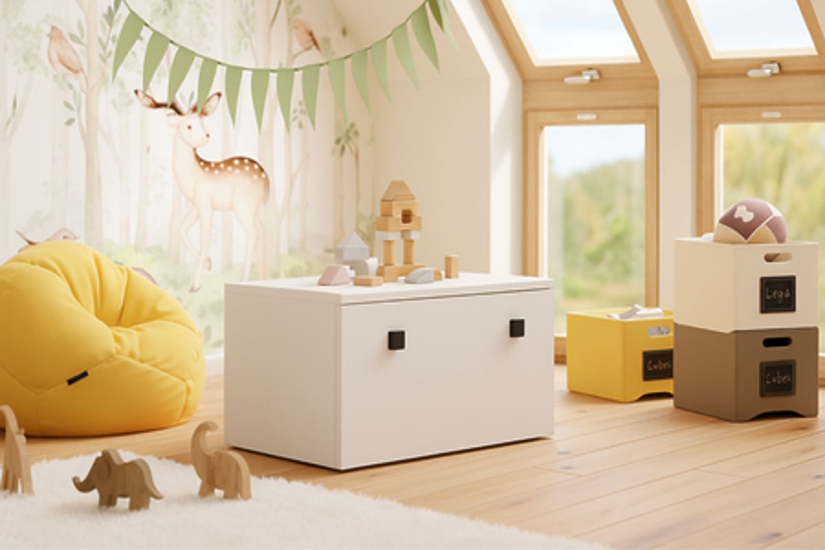 Kutija INGA odlikuje se modernim, minimalističkim izgledom koji se savršeno uklapa u različite stilove interijera. Može služiti ne samo kao prostor za pohranu igračaka, već i kao praktično skrovište u drugim prostorijama. Izrađena od izdržljive laminirane ploče i opremljena PVC rubom, jamči čvrstoću i jednostavno održavanje čistoće.