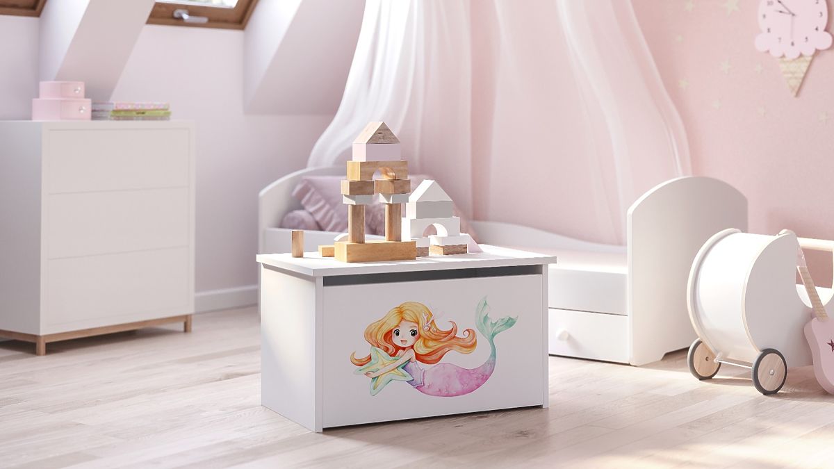Banaby.hr » Dječji namještaj / Komode i ormarići / Škrinje za igračke / Škrinja za igračke Daria bijela s printom Sirena