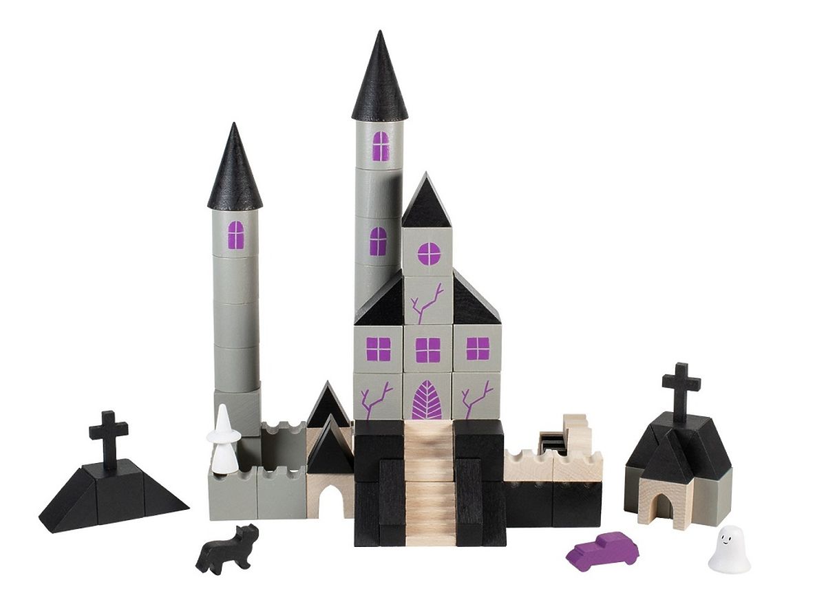 Izgradite vlastiti ukleti dvorac pun mračnih tornjeva, duhova i tajanstvenih zakutaka! Ne nedostaje bijela dama i crna mačka koje čuvaju svaki kutak. S 97 dijelova od kvalitetnog drva možete sastaviti dvorac točno prema svojim zamislima. Građenje razvija logičko razmišljanje, strpljenje i koncentraciju, a istovremeno omogućuje djeci da uključe maštu pri izmišljanju vlastitih priča o duhovima i tajanstvenim likovima. Igra je zabavna za svu djecu koja žele uživati u avanturi u tajanstvenom svijetu ukletog dvorca. Glavne značajke: 97 različito oblikovanih drvenih dijelovaosnovna veličina kocke 2,5 cmvježba finu motorikurazvija maštuzdravstveno sigurnoizrađeno u Češkoj Republici pogodno za djecu od 3 godine