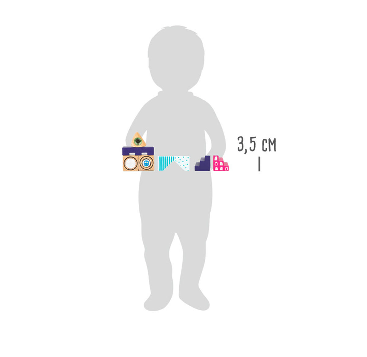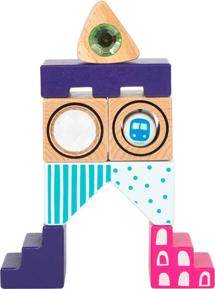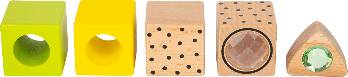 Idealno za gradnju, slaganje, pohranu i otkrivanje! Drvene kocke Fantasy zasigurno će oduševiti i najmlađu djecu. Uzbudljivi vizualni i haptički efekti, zvečkice, prizme, žive boje i oblici, kamenčići i vlak u pokretu stimuliraju osjetila i osiguravaju dugotrajnu zabavu. Tijekom slaganja, mali graditelji vježbaju koordinaciju pokreta i finu motoriku, stvarajući najmaštovitija umjetnička djela. Idealno za kombinaciju s prirodnim drvenim kockama! Visokokvalitetna izrada, lako za držanje i idealno za dječje ruke. U čvrstom poklon pakiranju kocke se mogu sigurno pohraniti! S ovim posebnim, osjetilno stimulirajućim građevinskim kockama, dječje oči sjaje od radosti! Glavne značajke: Osjetilne kocke koje stimuliraju osjetila, Privlačne boje i oblici kocki