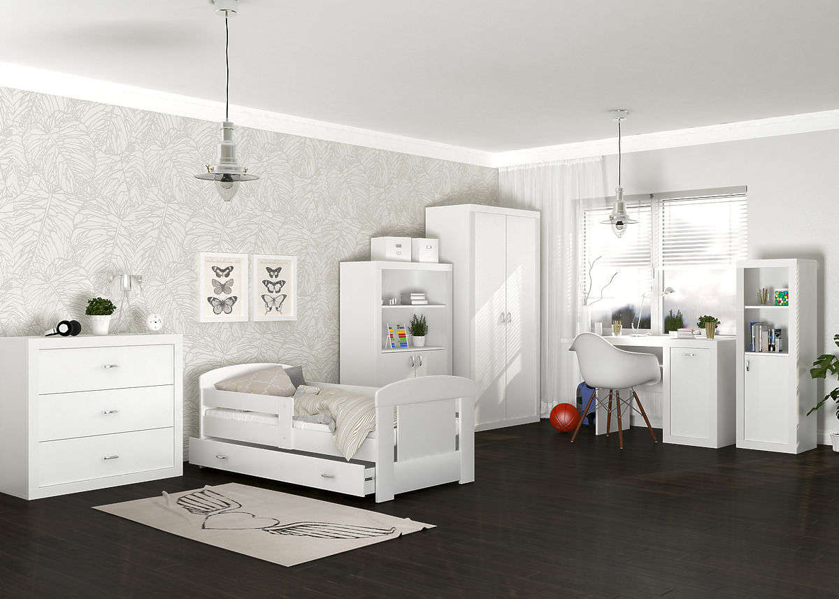 Krásný nábytek do dětského pokoje v bílé barvě je velmi univerzální, vhodný pro dítě v každém věku a hodí se jak do dívčího, tak do chlapeckého pokoje.