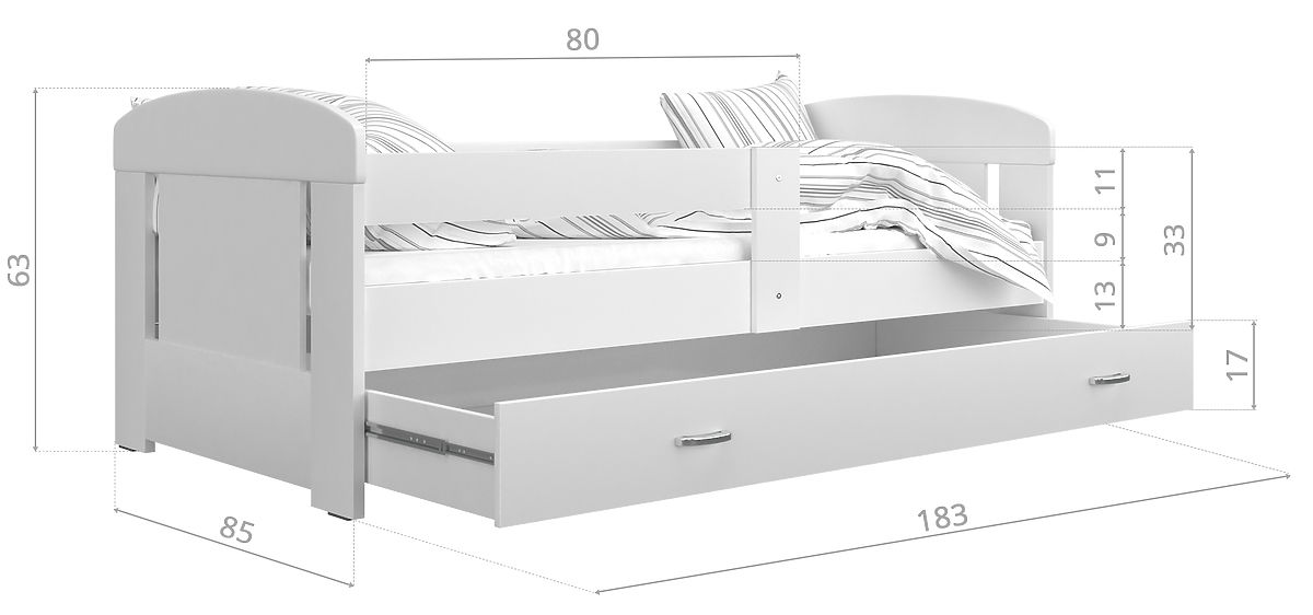 Matrace (160x80 cm, 180x80 cm, 200x80 cm) nejsou součástí postele, naleznete je v kategorii DĚTSKÉ MATRACE.