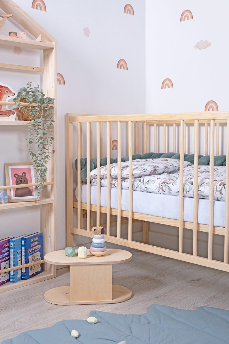 Klasični drveni dječji krevetić Standard u prirodnoj boji ističe se svojom jednostavnošću i prikladan je za male dječake i djevojčice. Prirodni izgled krevetića najbolje dolazi do izražaja u sobi uređenoj u skandinavskom stilu.