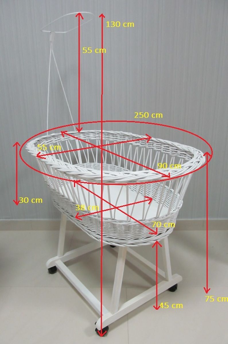 Pletena košara/krevetić je prikladna za djecu od rođenja do tjelesne visine bebe oko 60 cm. Obično je to do 4-6 mjeseci.