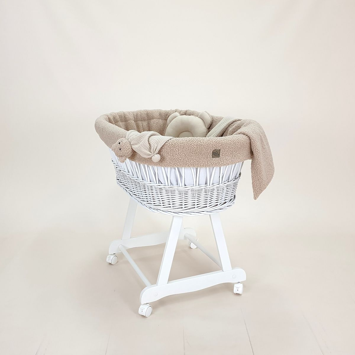 Banaby.hr » Dječji namještaj / Krevetići / Krevetići od pruća / Pleteni krevetić za bebe Teddy - bijela boja s bež opremom