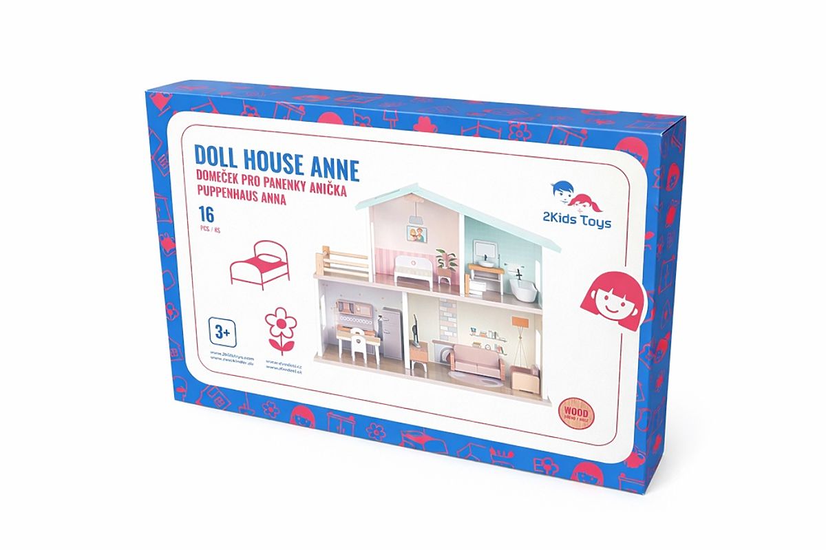 Drvena kućica za lutke s 16 dijelova potiče maštu i kreativnost. .. više