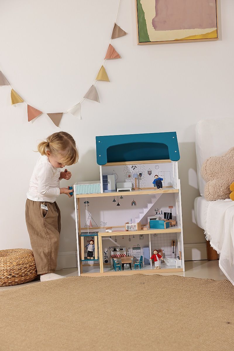Prekrasna drvena trokatna kućica savršen je poklon za svaku malu princezu! S pažljivo dizajniranim interijerom, bogatom opremom i lutkama (sve je uključeno u pakiranje) nudi svim djevojčicama beskrajne sate zabave. Ova elegantna kućica savršeno je mjesto za stvaranje vlastitih priča i razvoj dječje mašte.