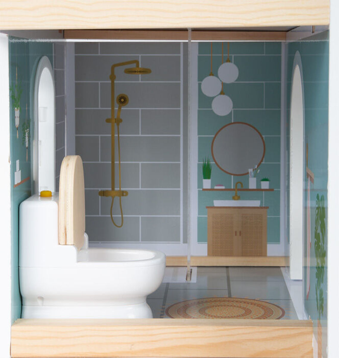 Ova moderna kućica za lutke ima otvorenu prednju stranu s prekrasnim umjetničkim detaljima i modernim interijerom. Kombinirana kuhinja s blagovaonicom, spavaćom .. više