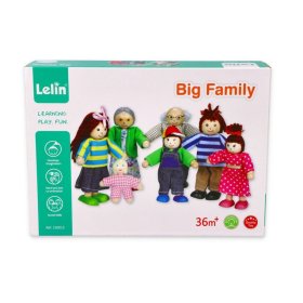 Vesela drvena obitelj bit će izvrstan dodatak kućici za lutke i malim garniturama namještaja iz naše ponude. U setu ćete pronaći roditelje, bake, djedove i troje djece.
