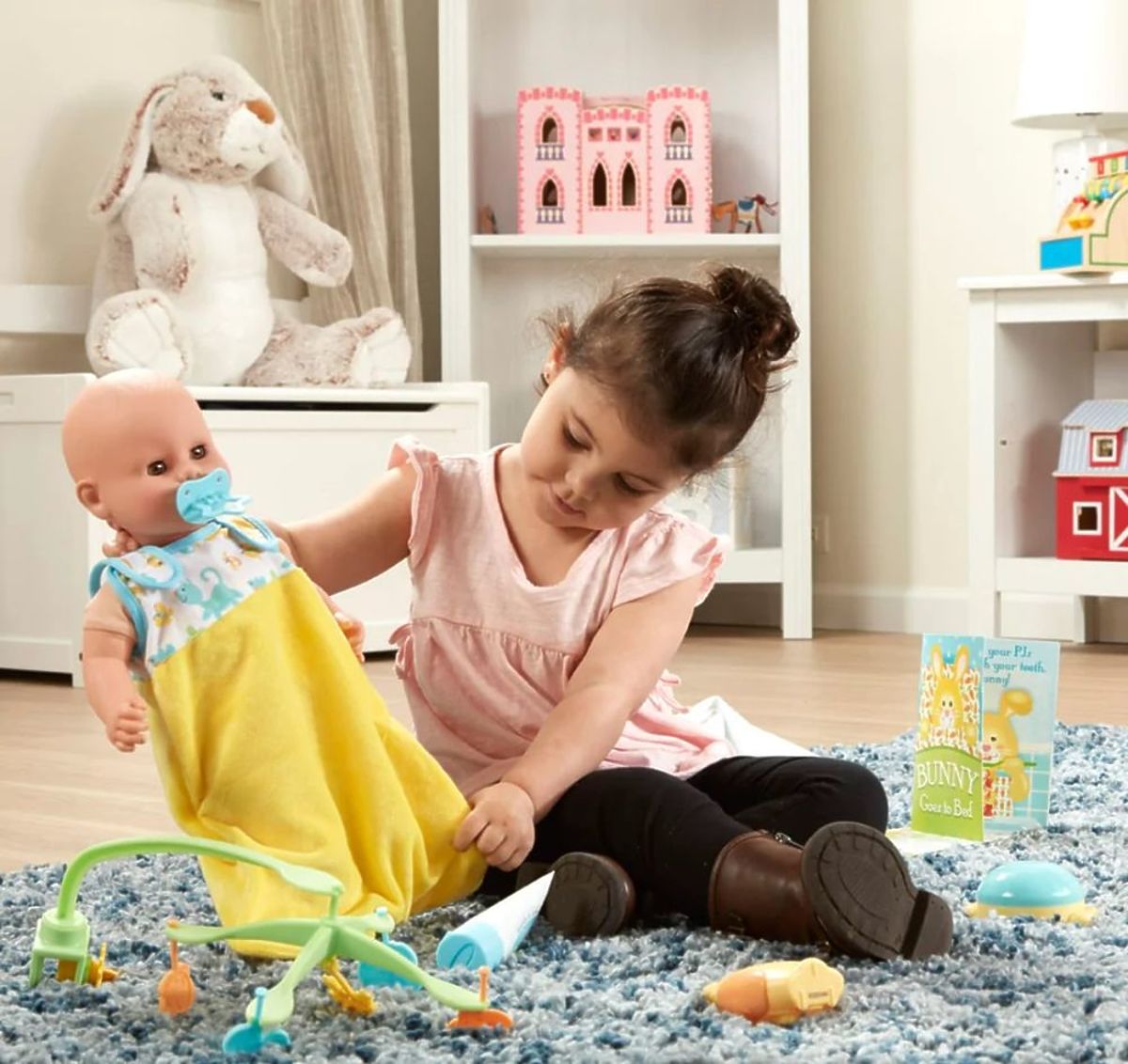 Set za igru sadrži sve što vam je potrebno za smirivanje djeteta prije spavanja.