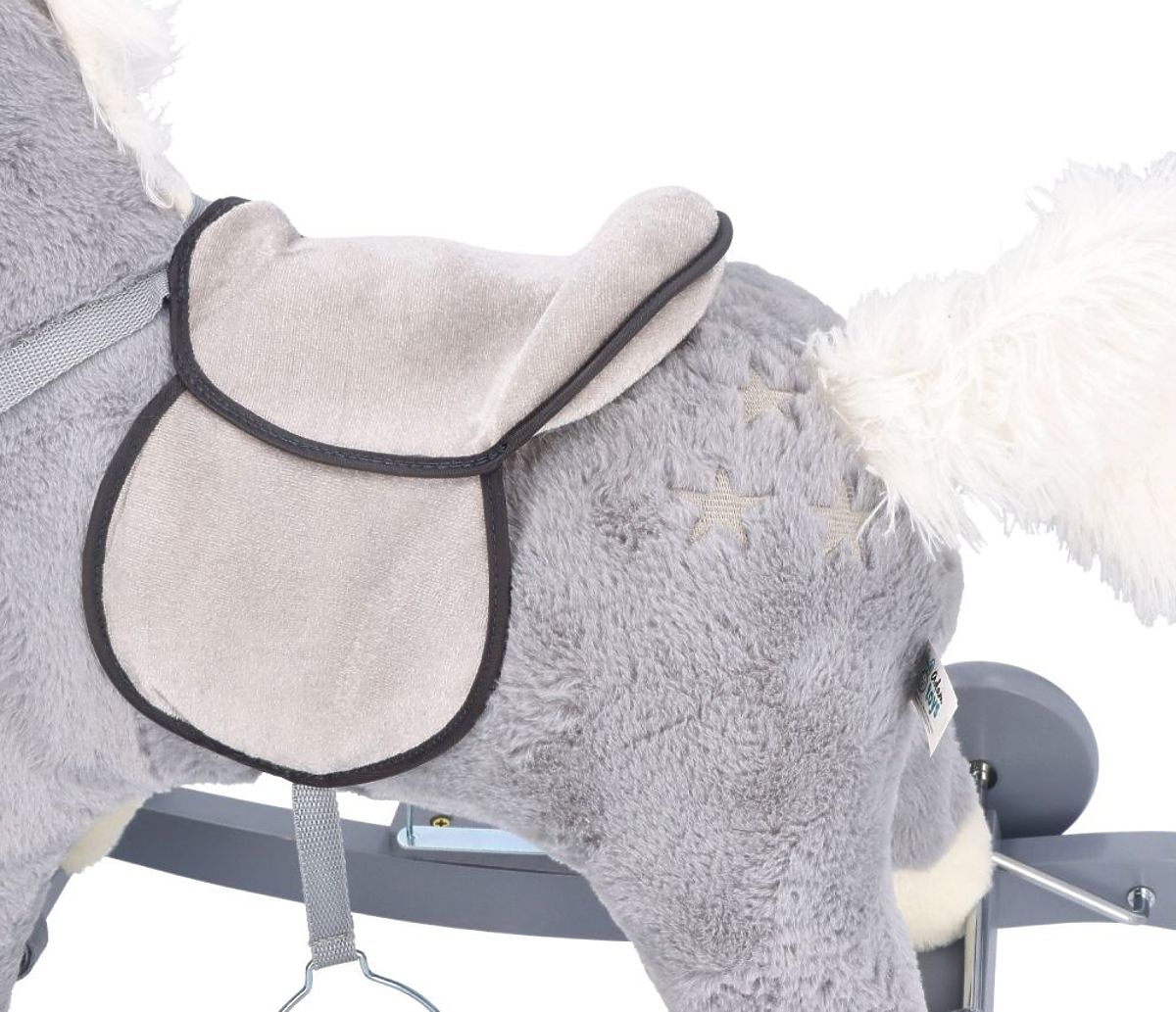 Šarm i karakter mu daju sivi dodaci, odnosno sedlo i uzda. Konj također ima sive drvene klizaljke, kotače i ručke.