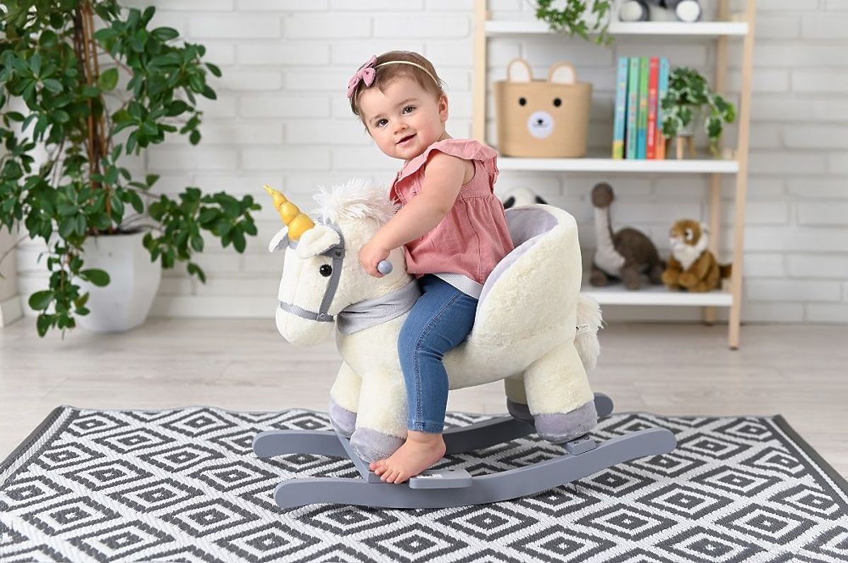 Igračka na zabavan način razvija dječju maštu i koordinaciju pokreta. Pri ljuljanju dijete mora koordinirati pokrete tijela s jednorogom koji se ljulja, tako da vježba ravnotežu.