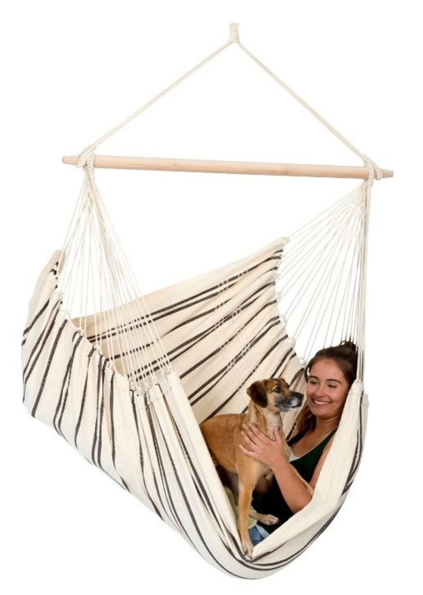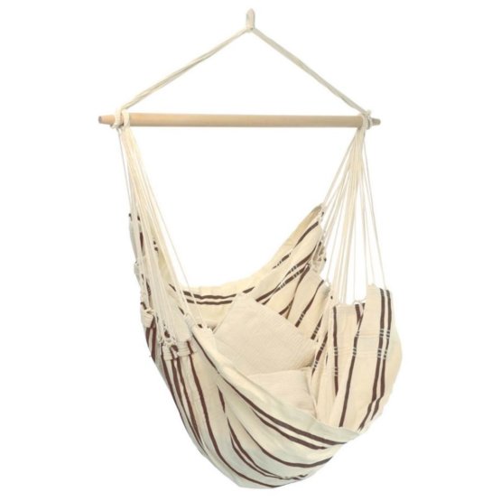 Stolica za ljuljanje Brasil Cappucino je nježno krem boje sa smeđim prugastim uzorkom. Oživite svoj interijer i isprobajte koliko će vam udobnosti donijeti novi dodatak!