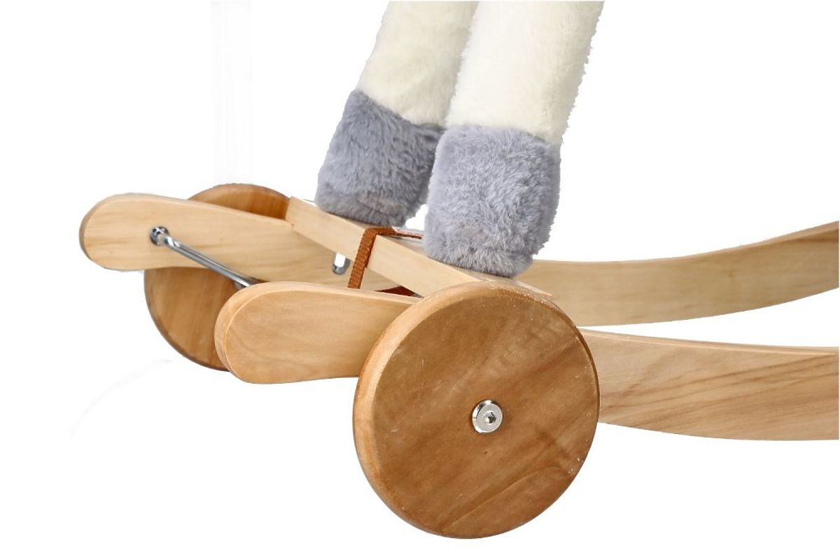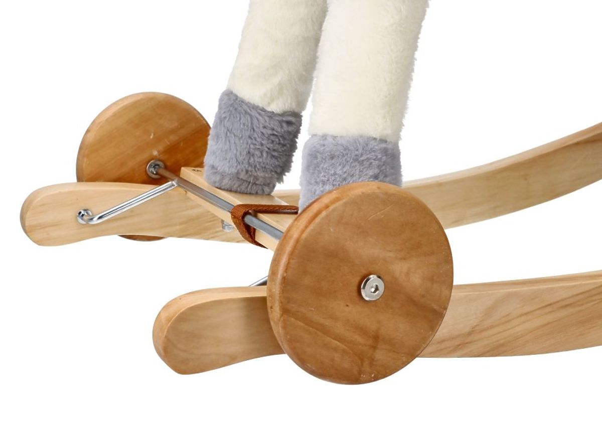 Osim toga, konjić ima drvene kotače koji omogućuju da jednorog postane ljuljački konjić ili gurajuće vozilo ovisno o njihovom postavljanju.