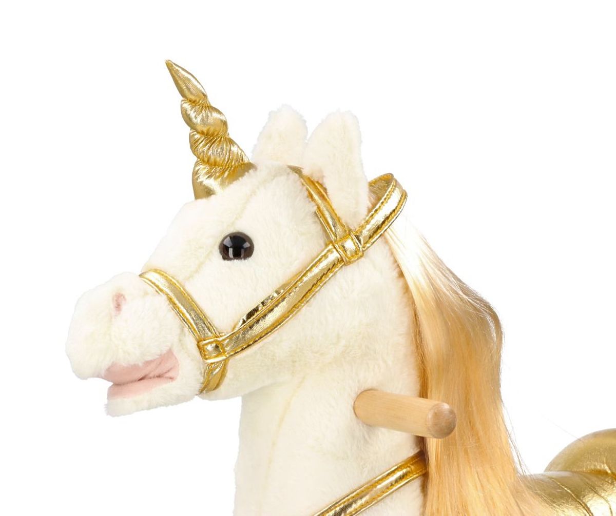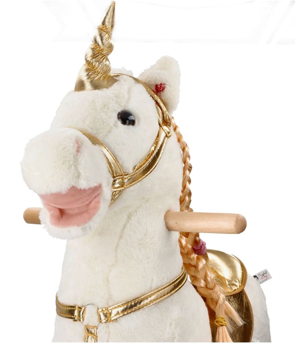 Ovaj simpatični ljuljajući jednorog u zlatnoj boji, izrađen od mekog plišanog materijala, bit će sjajan pratitelj svakom djetetu tijekom igre.