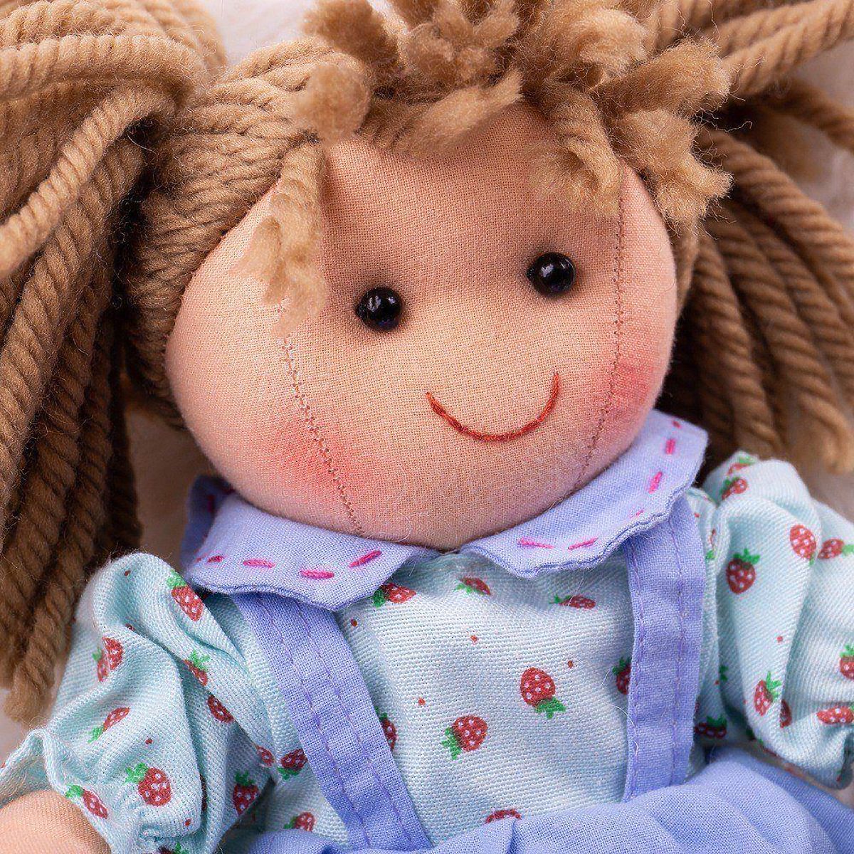 Upoznajte Grace - veselu, šarenu, tkaninu lutku s kojom će se vaše dijete sigurno rado igrati. Lutka je odjevena u kvalitetnu odjeću u lijepoj, svijetloplavoj boji s uzorkom crvenih jagoda. Mekane tkanine lutke izvrstan su način za poticanje kreativne igre. Glavne značajke: sigurno mekano tijeloigra s lutkom razvija finu motoriku i sposobnost pomaganja, brigeza lutku Bigjigs Toys moguće je kupiti odjeću u odgovarajućoj veličinizgodno već od rođenjaodgovara trenutnim europskim sigurnosnim standardima