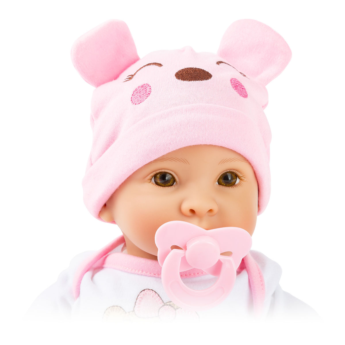 Lutka Marie s mekim tkaninskim tijelom, plastičnom glavom i udovima s mnogo dodataka. Odjeća za lutku se lako oblači i skida. U paketu dolazi i dudica u boji, .. više